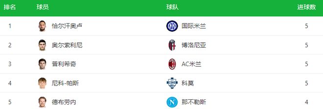 在意甲射手榜上,尼科-帕斯以5粒进球的成绩,同普利希奇、恰尔汗奥卢(含2粒点球)以及奥尔索利尼(含2粒点球)并列意甲射手榜首位。